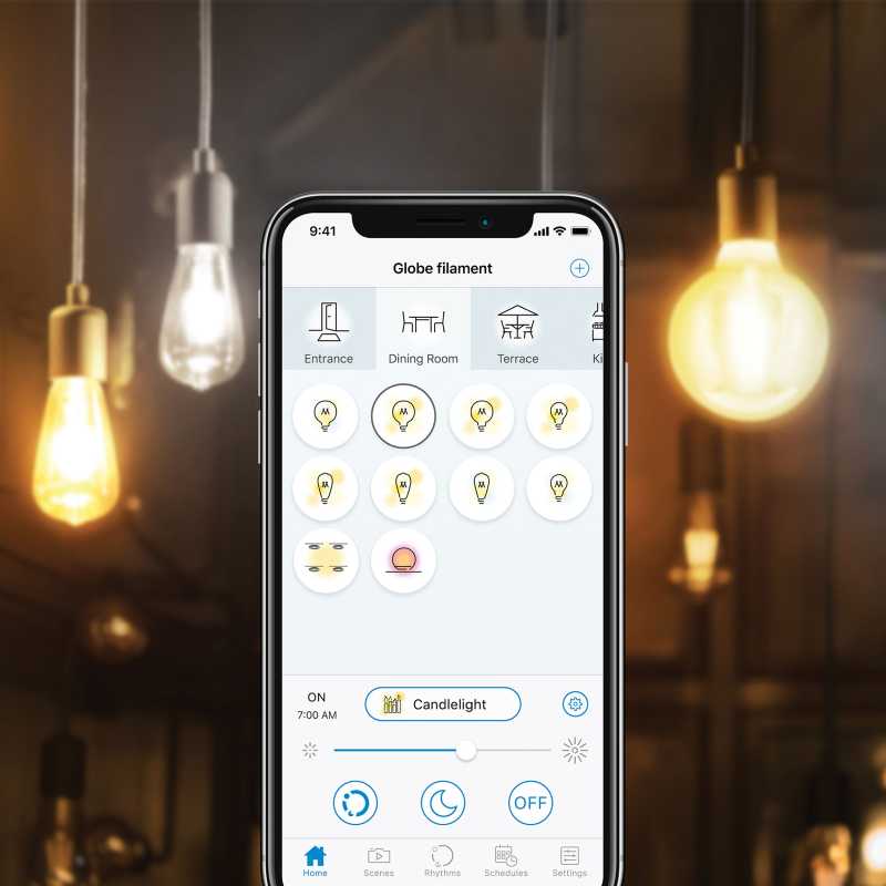 Each WiZ lamp has 2MB of flash memory needed for smooth execution of complex software, management of secure updates and storage settings. This memory also allows the light to be preloaded with dynamic light modes such as the popular fireplace, mesmerizing deep dive or fun - sets to enjoy, even without your smartphone nearby.