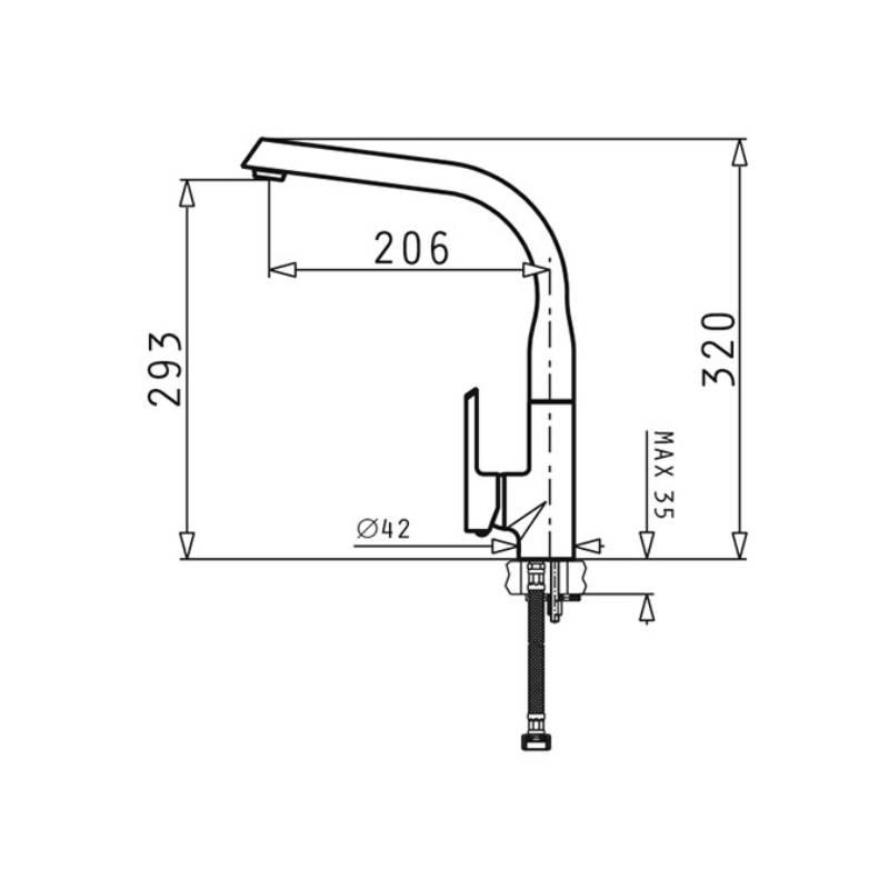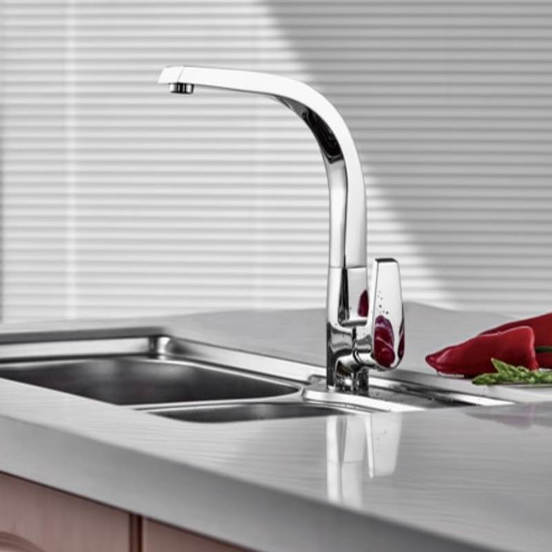 The kitchen faucet is single lever and with a movable spout. It has a high quality ceramic closing mechanism. The kitchen faucet is made of brass with a protective chrome finish.