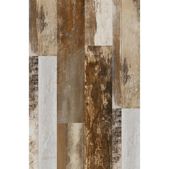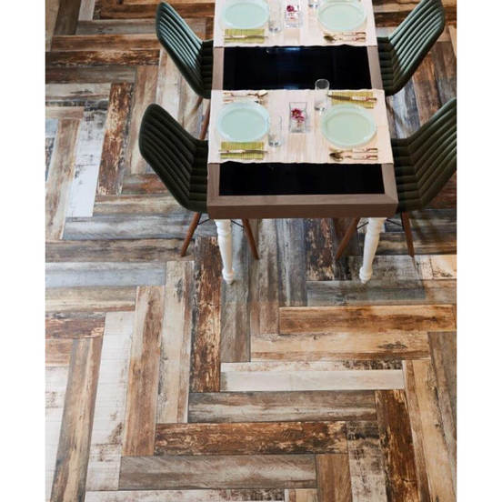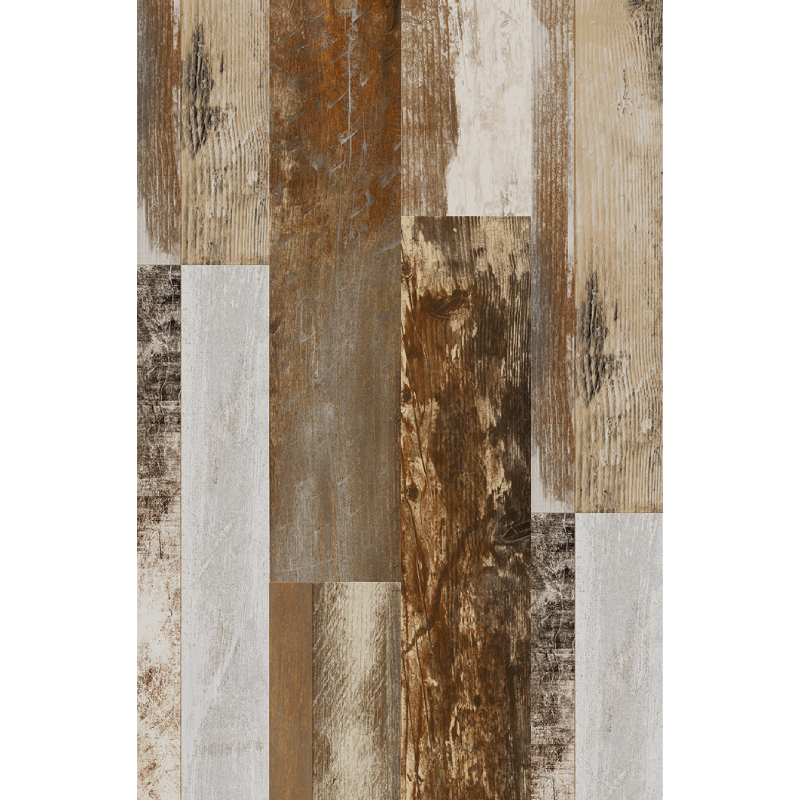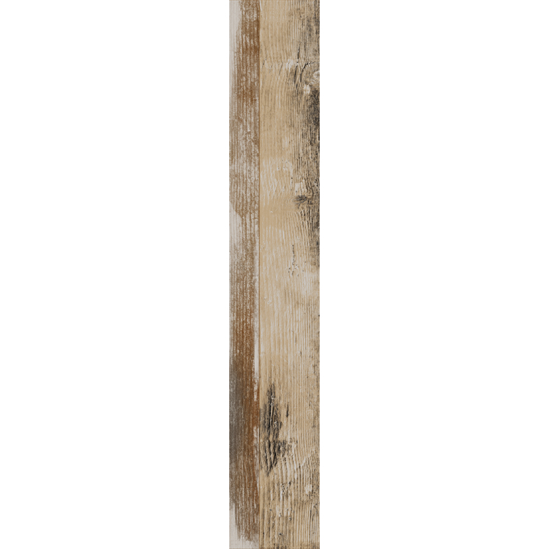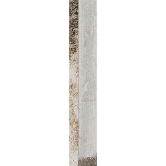 Granite from the Wooden series, model Colormix, of the brand SERAMIKSAN in color mix. The tiles are 15 x 90 cm in size and 9 mm thick. Their surface is matte and has a slight relief. One box contains 9 tiles with a roof area of 1.22 sq.m.