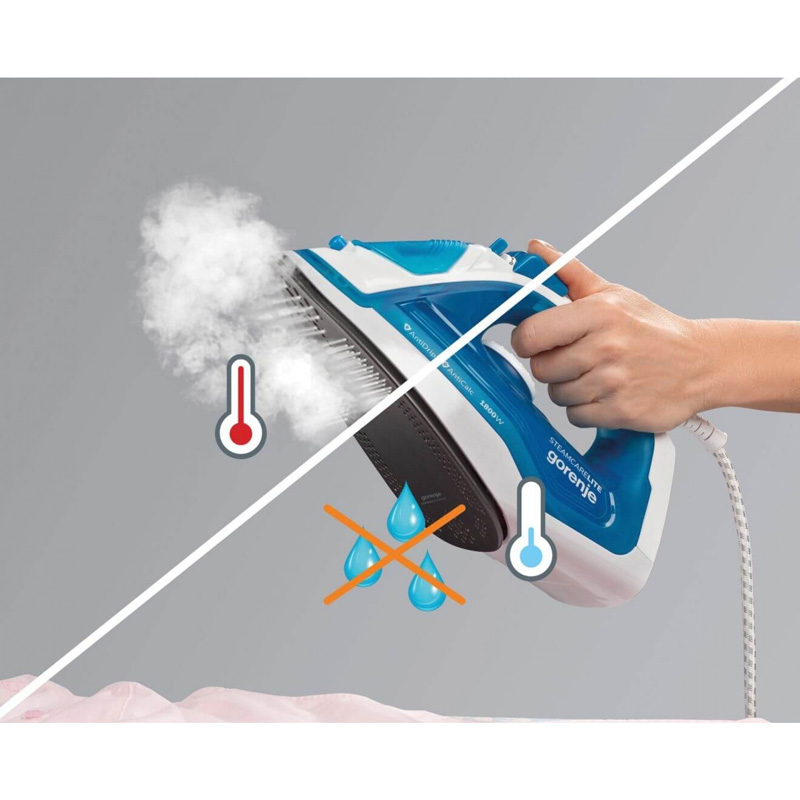 SIH1800BLT is an elegant ironing device with the GORENJE brand. Thanks to the Perfect Glide surface, you will enjoy smooth ironing without sticking. The power of the iron is enough to smooth and stubborn folds, and, even at maximum power, the risk of sticking is minimized. The weight of the device is only 1 kg. The reliability of the device has also been considered. Systems for controlling the dripping and accumulation of scale will monitor the ironing process and extend the life of your iron.