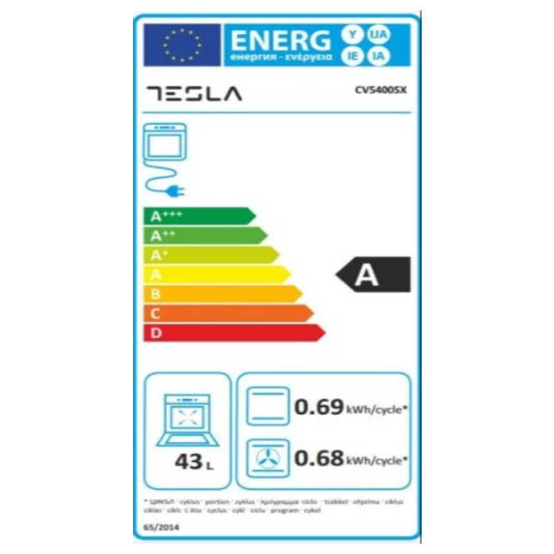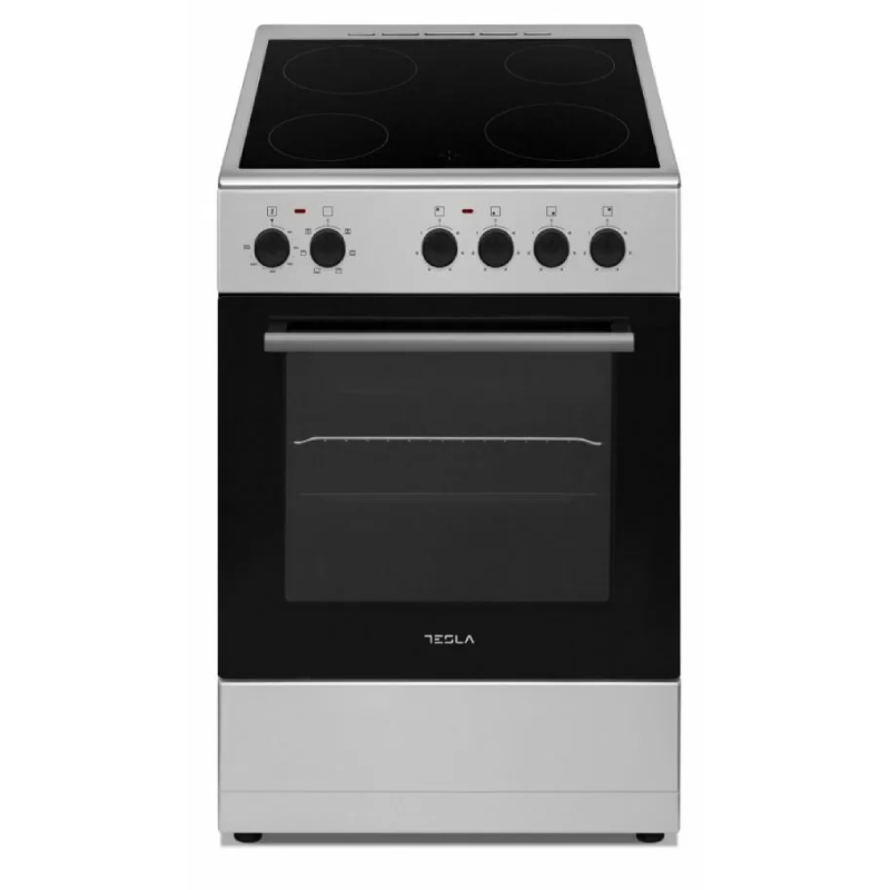 The Tesla CV5400SX cooker is a perfect choice for anyone looking for a combination of modern design, high functionality and energy efficiency. The model features a glass-ceramic hob with 4 fast-heating hotplates and a multifunctional fan oven with a volume of 43 liters. Thanks to its compact dimensions (83 x 50 x 55 cm), the appliance is suitable for both small kitchens and standard households, and energy class A guarantees economical operation without compromising on performance. Additional convenience in everyday use is offered by the built-in drawer for storing dishes, which is ideal for arranging trays, baking tins or kitchen accessories. The appliance is also equipped with a straight tray and a metal grill, included in the set, so you can start cooking immediately after installation. The combination of functionality, easy maintenance and safety makes the Tesla CV5400SX cooker an excellent choice for any household that does not compromise on quality.