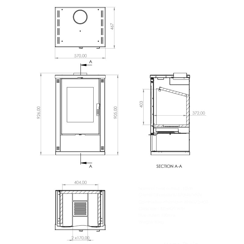 VERSO's Verso Theia solid fuel fireplace is manufactured in Bulgaria to high quality standards. The fireplace offers heat output of 9 kW and high efficiency - 81.2%. The Verso Theia solid fuel fireplace is suitable for heating an area of 170-200 cubic meters.The model is characterized by modern and stylish design.