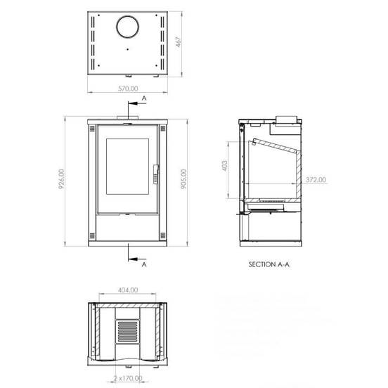- Dimensions of the combustion chamber (H x W x D): 40.3 x 40.4 x 37.2 cm