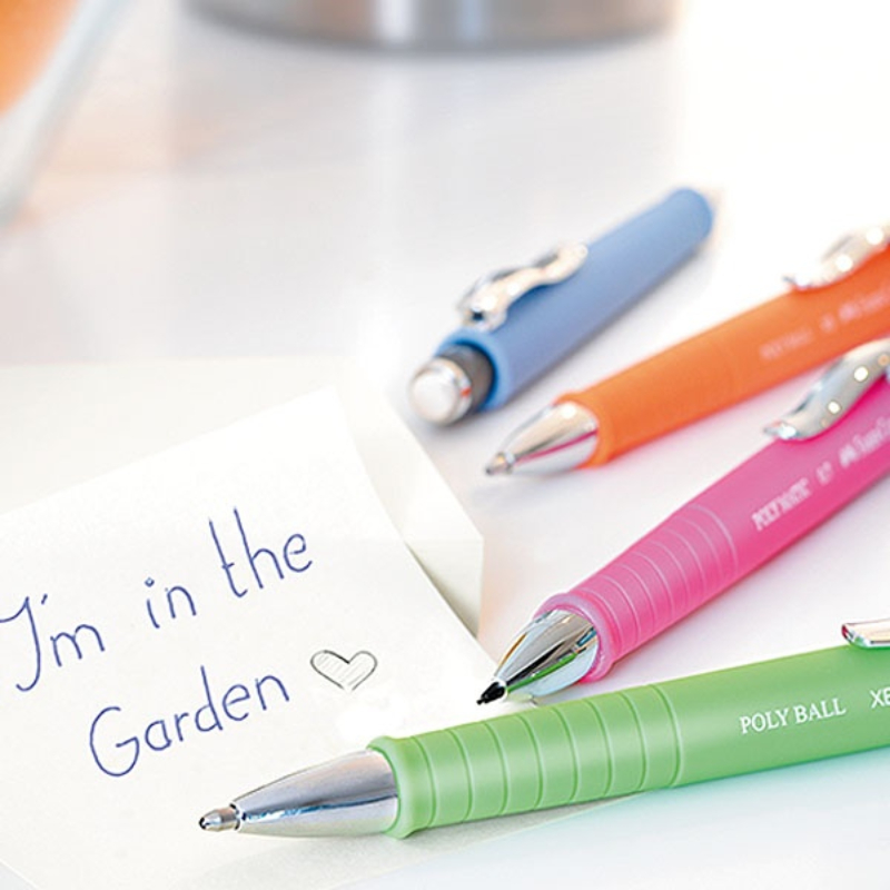 The pens from the Poly Ball XB collection by FABER CASTELL have a soft body surface, which guarantees high writing comfort. In addition, the ergonomic triangular grip allows you to write for hours without getting your hands and fingers tired. The addition to the XB name comes from the XB refill, which features a large capacity. Poly Ball XB chemicals can be subjected to various branding technologies.