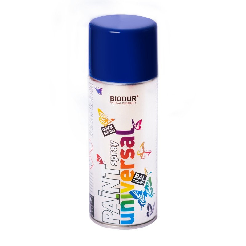 Universal spray paint - quick-drying alkyd enamel reinforced with acrylates. Suitable for interior and exterior applications. The spray is suitable for painting metal, concrete, plasterboard, wood, glass, paper and other surfaces. Perfect for painting with stencils. Provides a strong glossy coating, resistant to mechanical and atmospheric influences. It does not fade in sunlight and retains its gloss.