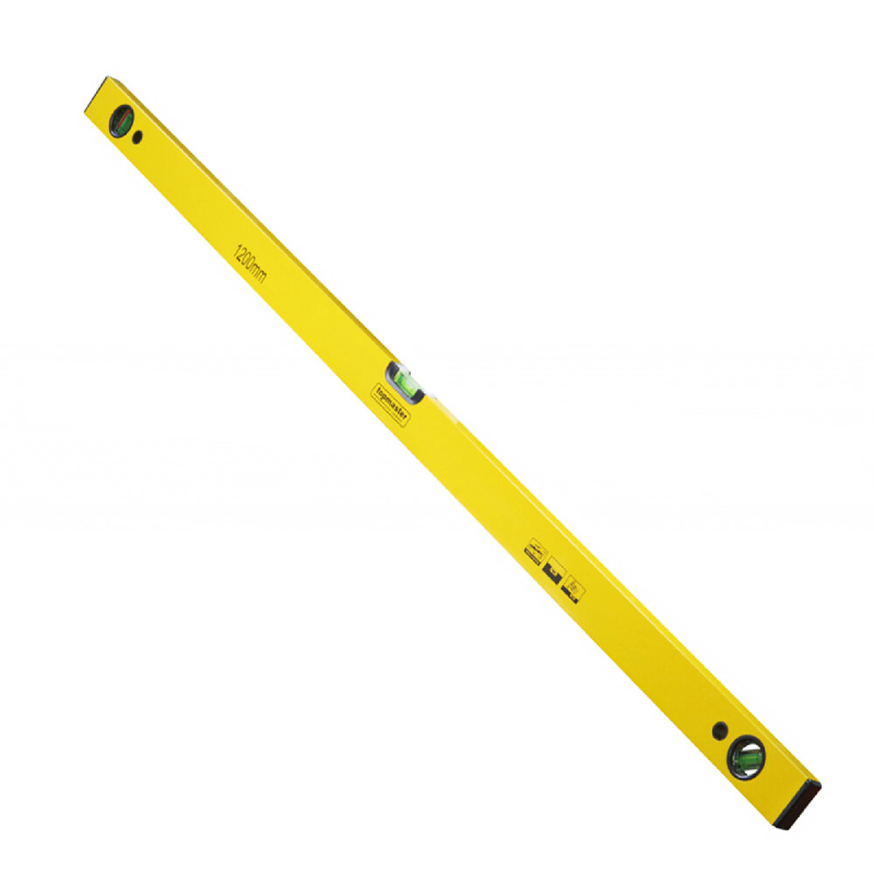 High-quality professional aluminum level TOPMASTER with a length of 1200 mm. The level provides measurement accuracy up to 1 mm/m. It is made of high-quality and lightweight materials for ease of carrying and working. It is equipped with shock-absorbing rubber tips at both ends. This level model has 3 measuring vials and a hole for hanging on a wall.