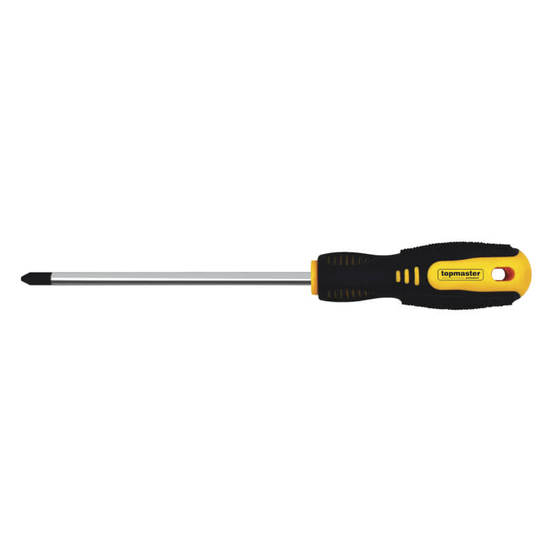 The PH1 screwdriver from TOPMASTER, star type, is made of high-quality Cr-v chrome-vanadium steel, protected against corrosion. It has a magnetized tip and a two-layer handle for better grip. The dimensions of the tool are: L = 175 mm, L1 = 75 mm, Ф 5 mm.