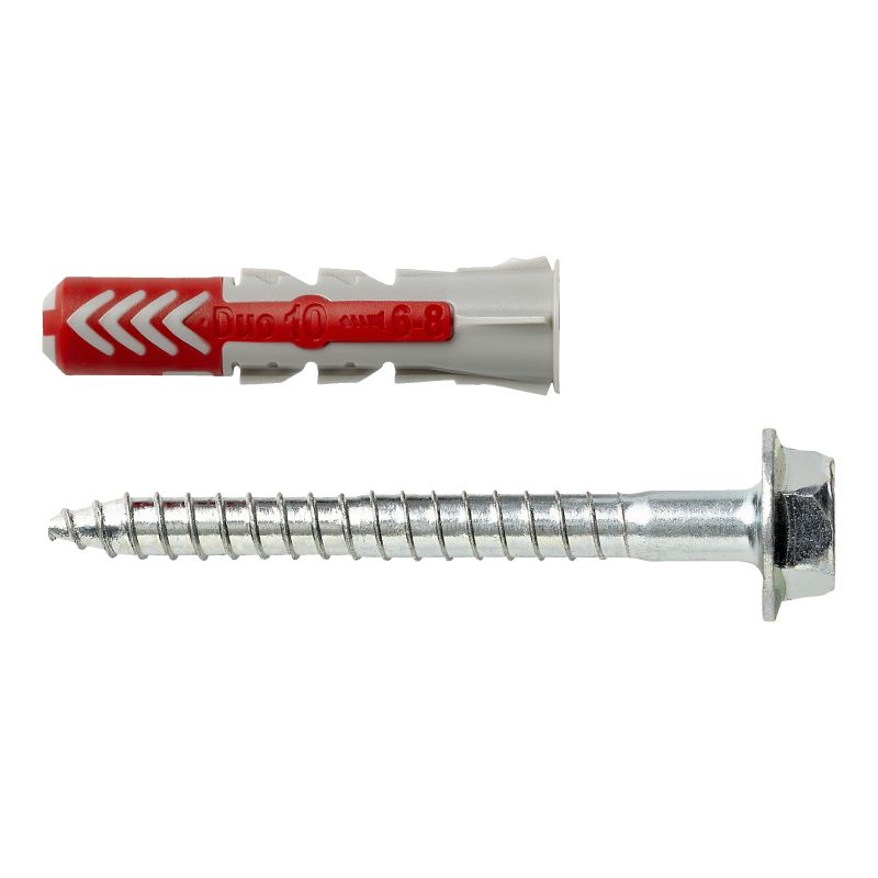 FISCHER Duopower universal dowel set with diameter ф10 mm and length 50 mm. The multi-purpose dowels from this series are an intelligent solution for working with any material. The dowel consists of 2 components with 3 dissolution functions. This ensures better contact with the material and shows incomparable load values. Depending on the material, the dowel activates the optimal functional principle (dissolving, gripping, connecting) for the best fastening.