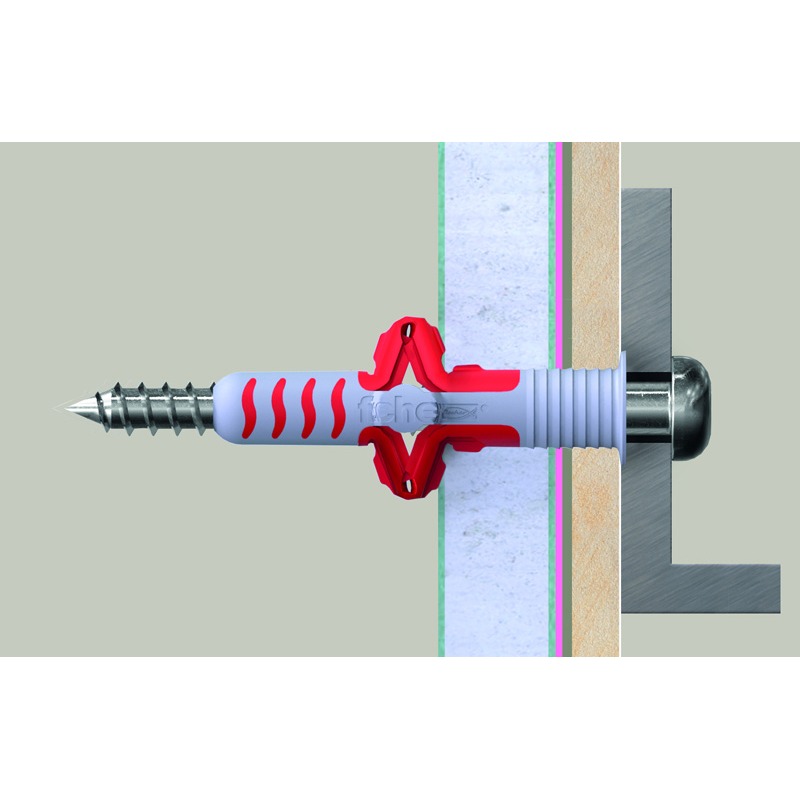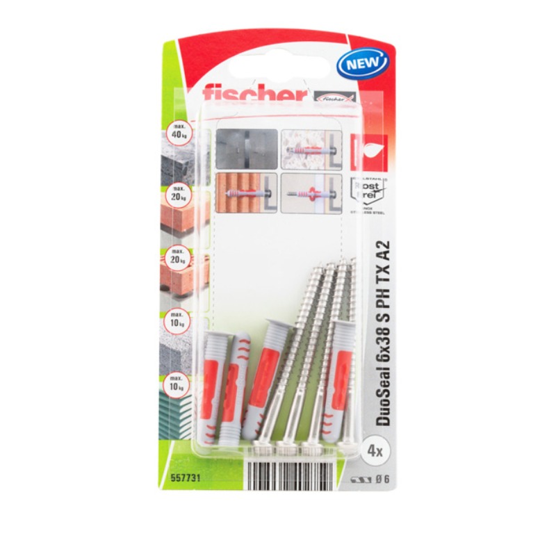 DuoSeal - universal dowels for wet rooms, which are an ideal solution for installation of all components in kitchens, bathrooms, wet and service rooms. The dowel is suitable for fastening in gypsum boards, solid bricks and building blocks with cavities such as concrete, aerated concrete, cavities with cavities. The universal principle of operation allows the dowel to dissolve as tightly as possible in dense materials.