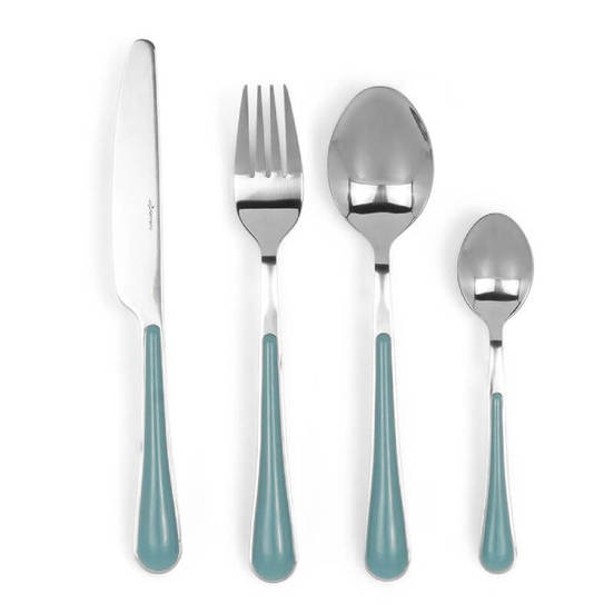 Set of cutlery consisting of 24 parts suitable for 6 people. Cutlery is made of high quality stainless steel and with plastic handles in blue.