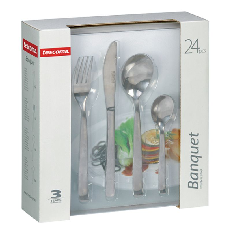 Set of cutlery consisting of 24 parts suitable for 6 people. Cutlery is made of high quality stainless steel. They are dishwasher safe.