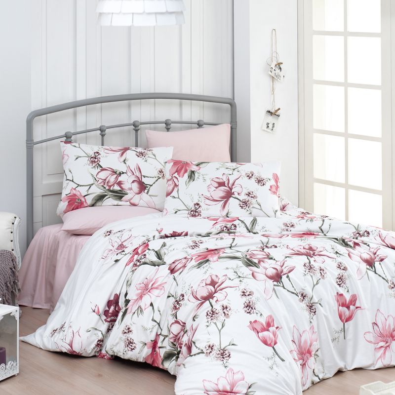 Layla bedroom set in 3 parts. Made of high quality fabric - 100% cotton ranfors. The bed linen consists of a sheet, a duvet cover and a pillowcase. The parts are in printed pattern.
