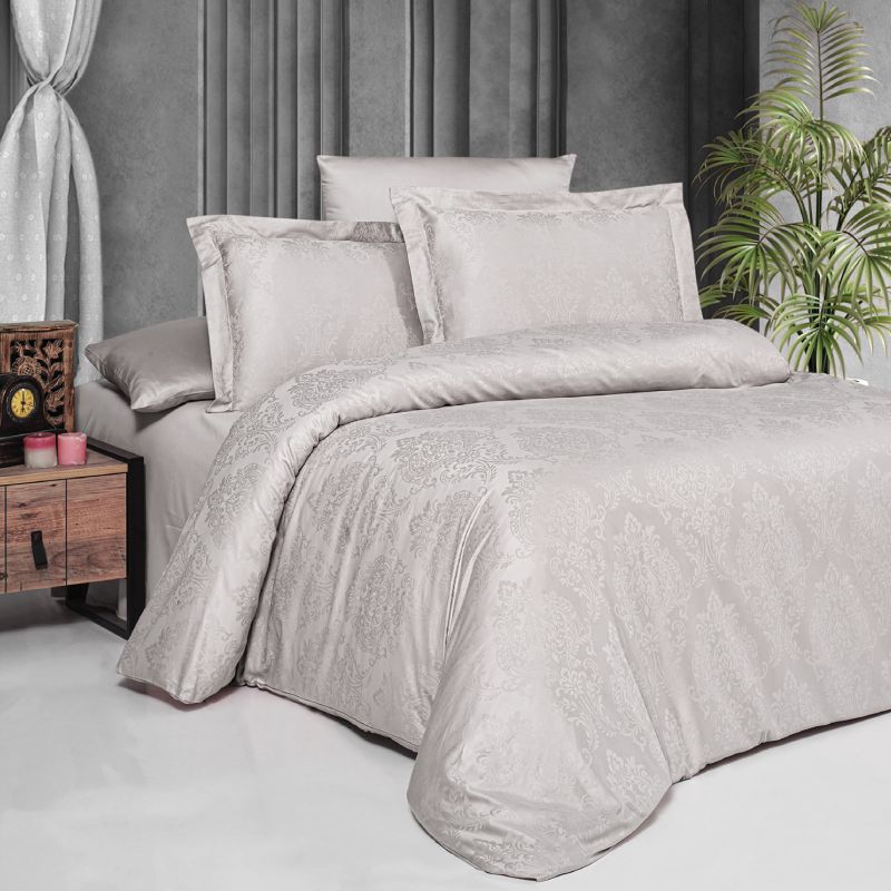 Luxury bedroom set Juana in 4 parts. Made of 100% satin jacquard cotton. Satin is a fabric that is made of 100% cotton fibers. Thanks to the special technology of baking the fabric, satin acquires a soft and light shiny effect. Cotton satin is a fabric that creates a cozy warmth in the cold winter days and a slight pleasant coolness in the hot summer. Jacquard, on the other hand, is a smooth fabric - soft and at the same time highly resistant to wear, with different relief and density.