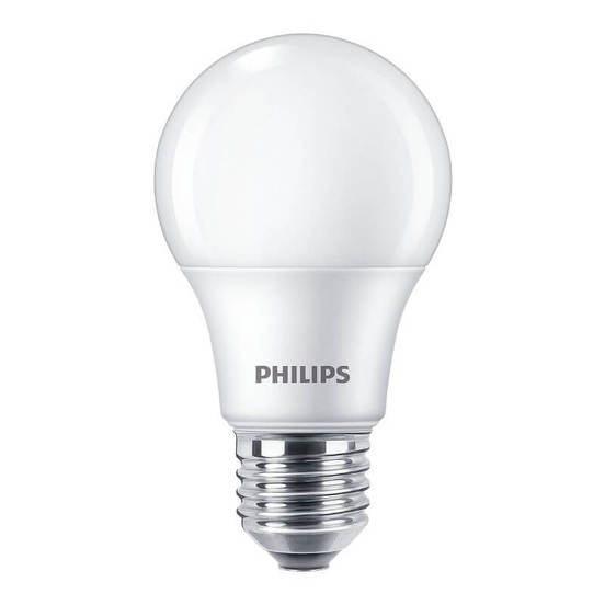 Energy saving LED lamp PHILIPS in classic shape. The LED lamp has a power of 8W (equivalent to 60W incandescent bulb), E27 socket and 806lm luminous flux.