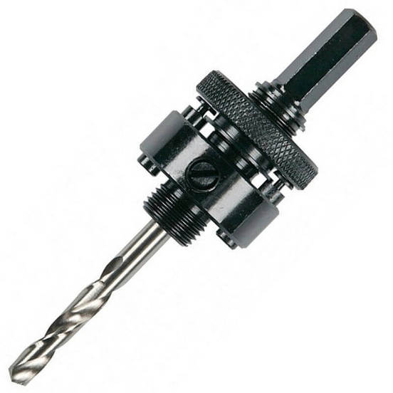 Bimetal drill bit adapter for manual and stationary drilling machines. Equipped with hardened drill made of alloy high-speed steel. Suitable for cutting wood and metal.