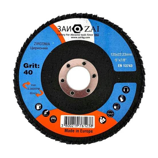 Lamellar disc with zirconium abrasive grain for grinding carbon, welds, alloys and soft metals. With conical shape for perfect contact between the sandpaper and the part when sanding corners. The durable construction allows aggressiveness when grinding edges.