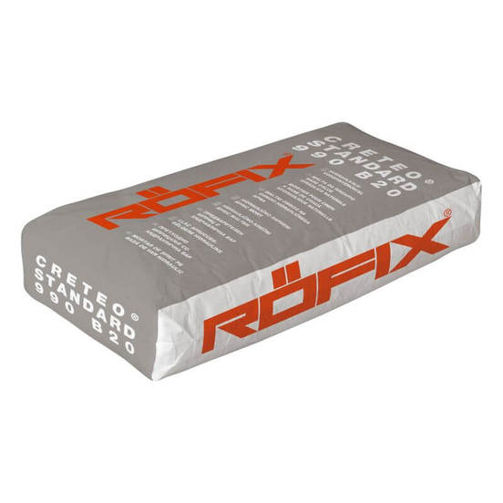 RÖFIX Creteo Standart 990 B20 is a dry concrete mix for casting formwork blocks and smaller hardened building elements, foundations, plinths, excavation reinforcements and more.