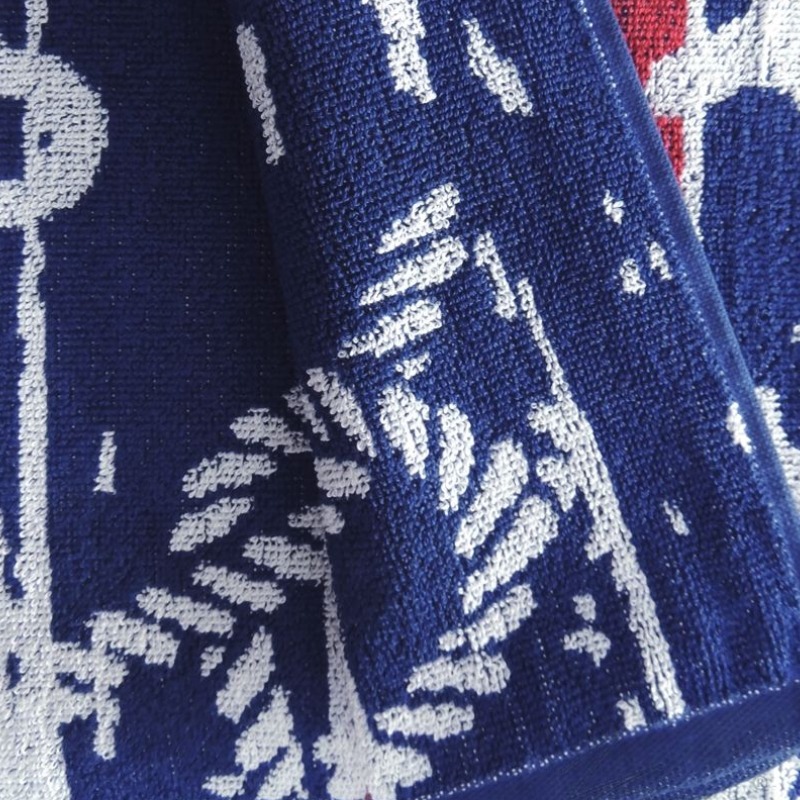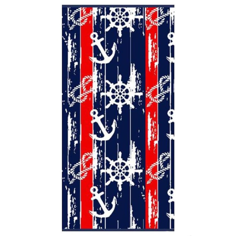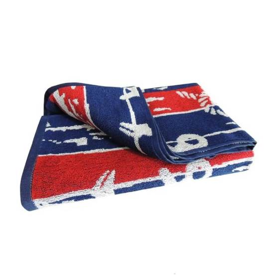Beach towel with marine motifs, made of cotton and polyester. Perfectly suitable for washing in a washing machine up to 40°С. The towel guarantees high absorbency and softness.