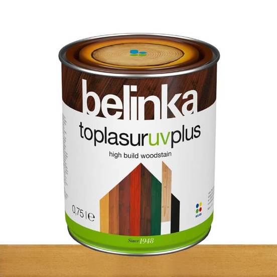 Belinka's Toplasur UV Plus is a thick-layer azure coating that is particularly suitable for protecting wood exposed to severe weather conditions. It is suitable for stand-alone use or as a top coat after applying Belinka Belocid Plus. Before applying Toplasur UV Plus on wooden surfaces, they must be treated with Belinka Base.