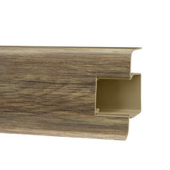 Floor skirting with cable channels for laminate flooring. The skirting board is by VOX from the Esquero Duo series No.653 in the color Oak Alabaster.