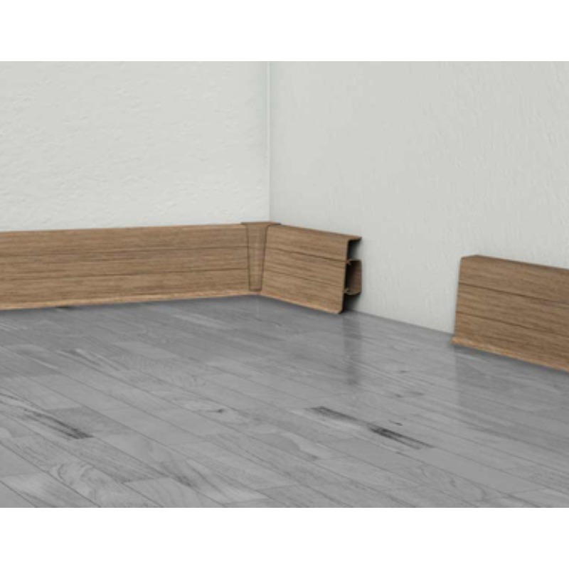Floor skirting with cable channels for laminate flooring. The floor skirting is of the DOELLKEN brand from the Q-60 series.