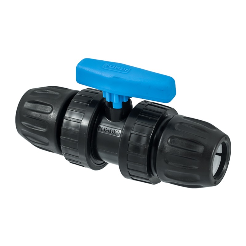 Ball valve - quick connection for plastic pipes. The ball valve is suitable for pipes with a diameter of ф63 mm. It is resistant to pressures up to 10 bar.