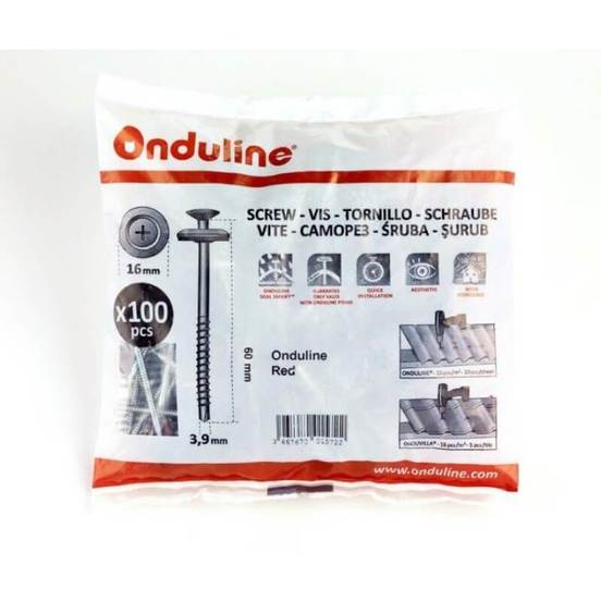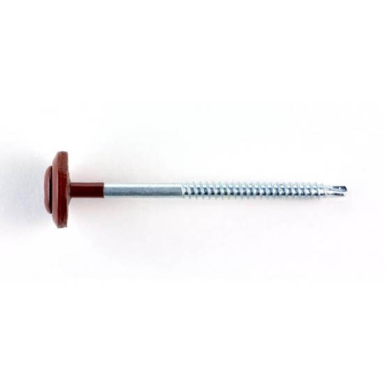 Universal screws for corrugated bitumen roofing sheets. The screw has a red polyethylene head and a diameter of φ5 mm. The length of the screw is 55 mm.