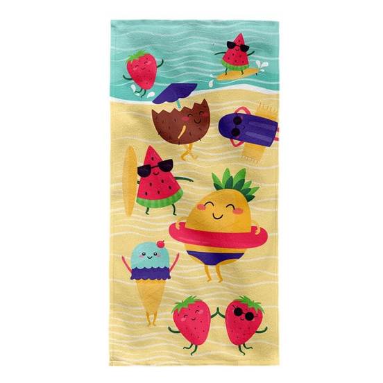 The beach towel does not retain sand and absorbs water extremely quickly. The product has antibacterial properties and is certified with Eco-tex quality certificate. The beach towel is made with a back made of 100% cotton, and the front part has a polyester film and a printed image using special technology for digital printing.