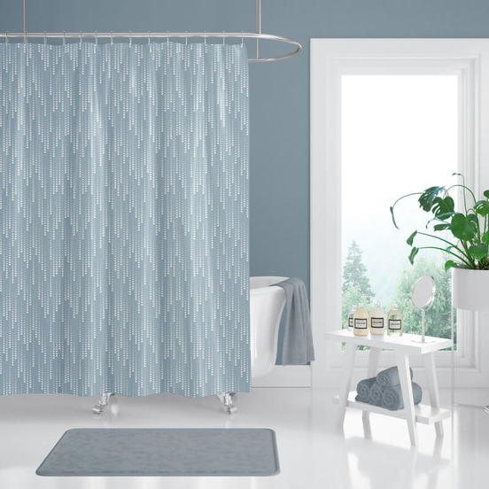 Bathroom curtain with a width of 180 cm and a height of 200 cm. It is made of 100% polyester with a density of 90 g/sq.m. The material has a water-repellent impregnation. Easy to wash and iron, dries quickly, has increased wear resistance.