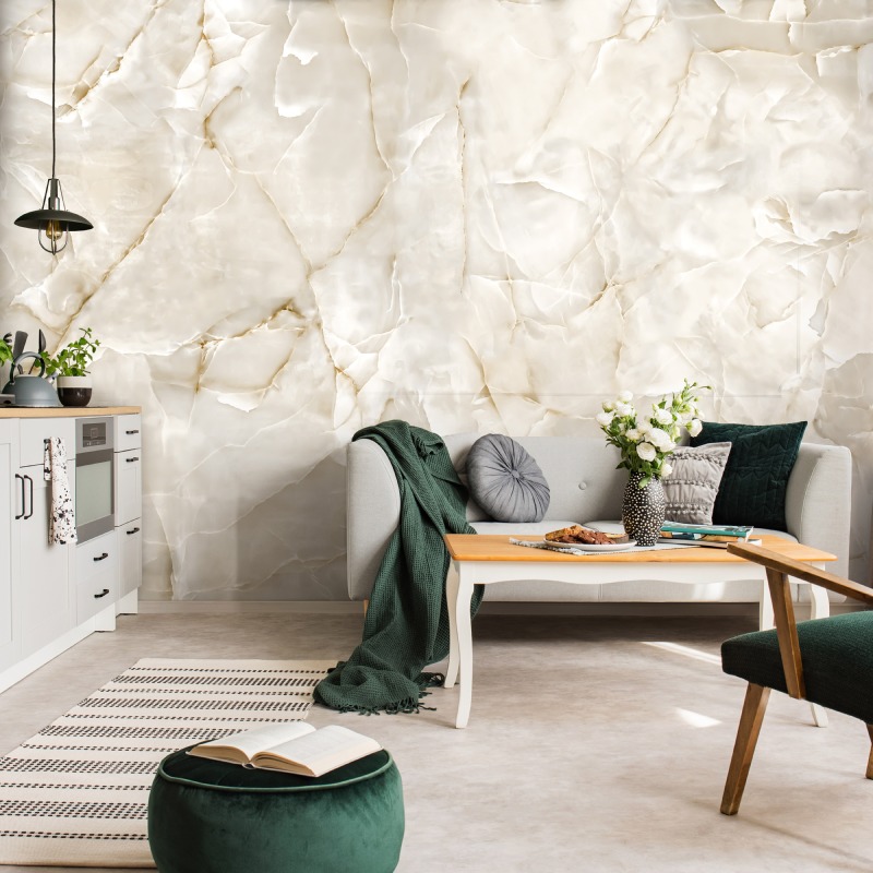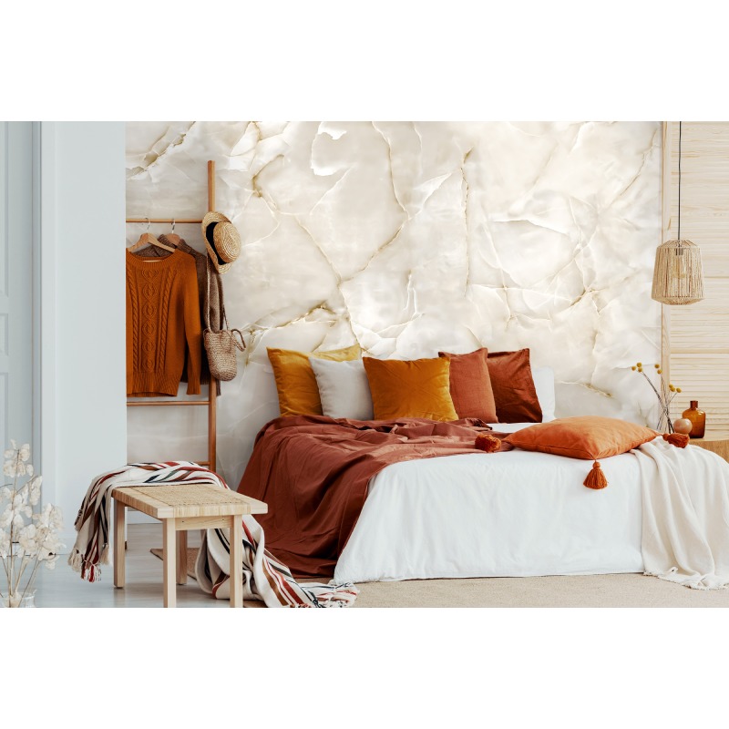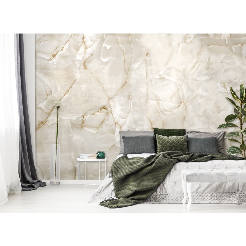 High-quality, large-format photo wallpaper with an onyx cream image. The photo wallpaper is suitable for placing on the wall in any room that is not exposed to high levels of humidity.