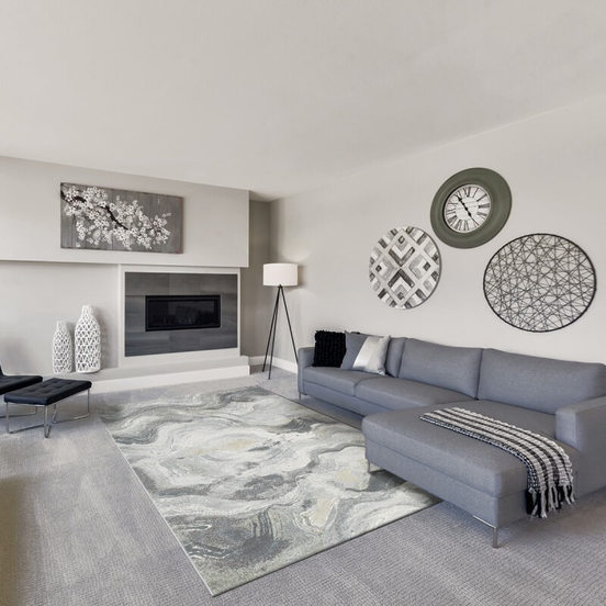 Modern carpet from the Argentum series of the Tony Bad brand, made in Belgium. The carpet is in a beige/grey/green color combination. It can be a beautiful addition to any modern interior, bringing comfort and coziness to the home. It is characterized by high resistance to wear and easy maintenance.