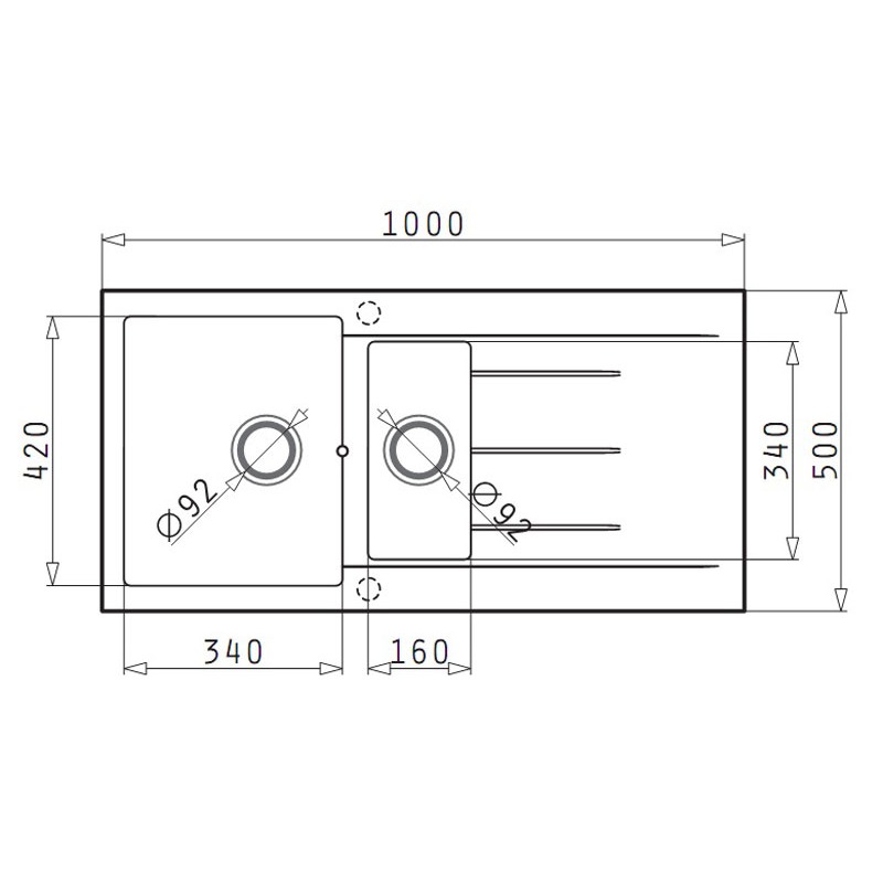 The composite sink is available without holes for a mixer or a built-in dispenser. These can be tried on at the customer's request during the preparation of the order. The holes can be of standard size - diameter φ35 mm.