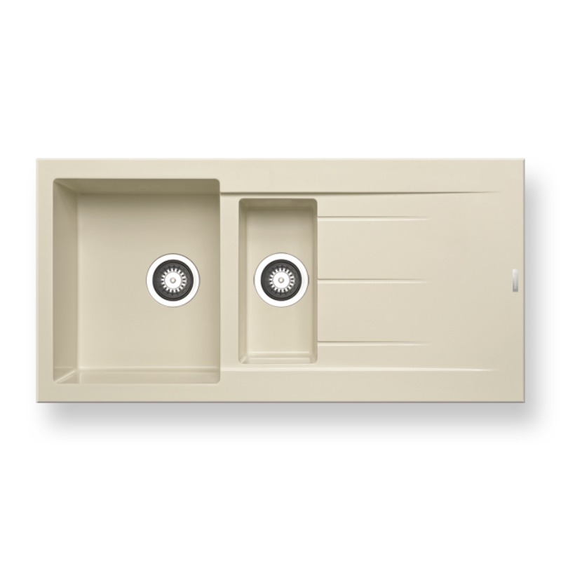 The double-top kitchen sink is made from 80% granite crystals and 20% a mixture of high-quality resins and other crystal binding agents. The composition of the sink is a guarantee of an antibacterial surface, resistance to extreme temperatures, as well as high resistance to mechanical impact such as impact, scratches and others.