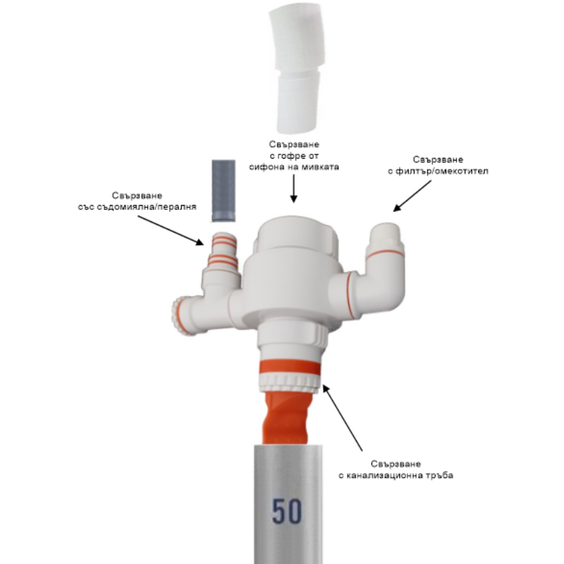 Connection to sewer pipe: φ50 mm
