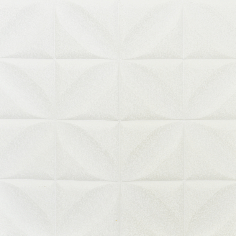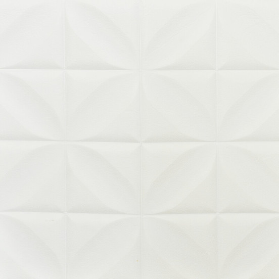 Self-adhesive 3D panel for walls in interior rooms. It is made of PE-polyurethane foam and decorated with a geometric figure in the shape of a flower. In its back part, the decorative panel has an adhesive layer that adheres extremely firmly and securely to surfaces. It can be bent on rounded walls and corners and cut.
