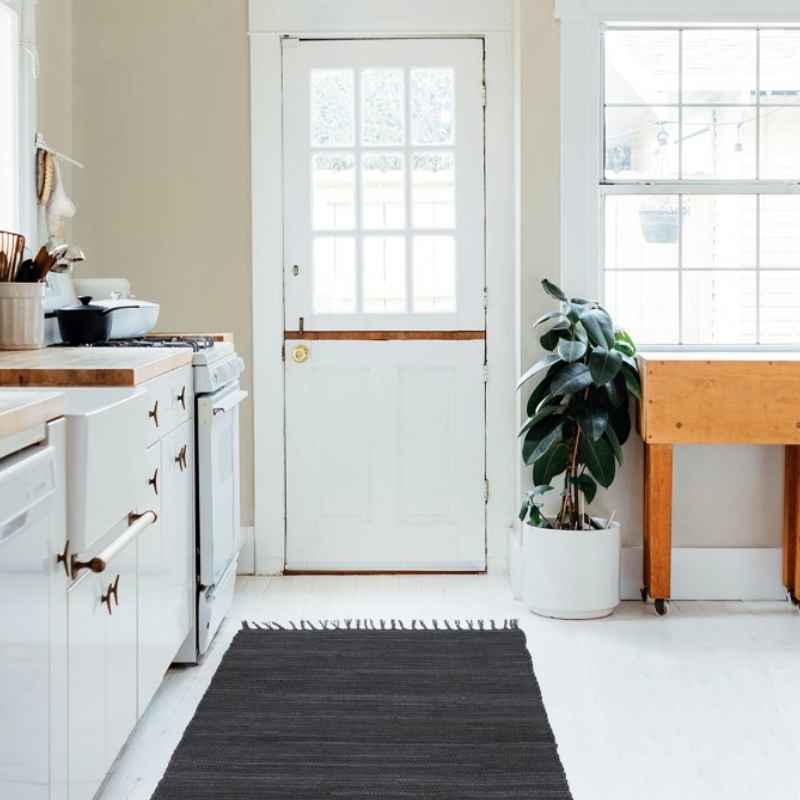 The model is woven from 98% cotton and 2% polyester. The rug measures 50 x 80 cm.