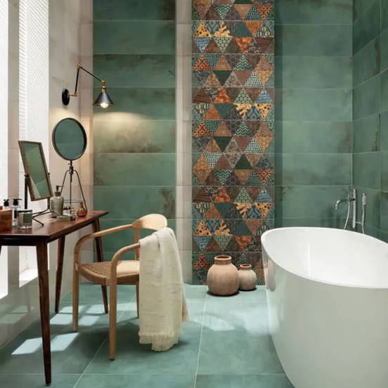 TUBADZIN's Goldgreen bathroom tile series is inspired by exotic eastern culture. Immerse yourself in an interior of natural earthy colors with distinctive motifs characteristic of the traditional culture of eastern peoples.