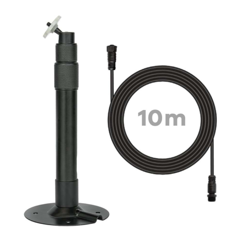 Kit for placing the antenna on a wall or roof to improve GPS signal reception by the SEGWAY NAVIMOW robotic lawnmower. The kit includes a rack, a telescopic antenna stand, dowels, self-tapping screws and a 10 m extension cable.