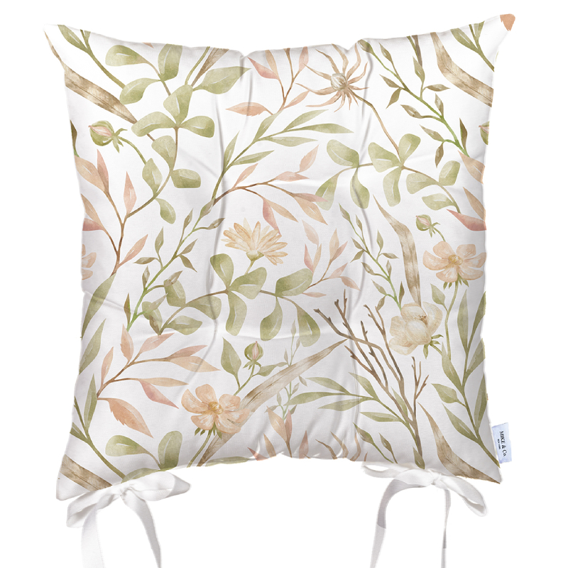 Decorative cushion for a chair with an autumn pattern. The pillow measures 43 x 43 cm and is made of polyester, foam and wadding. The case has no zipper and cannot be changed.