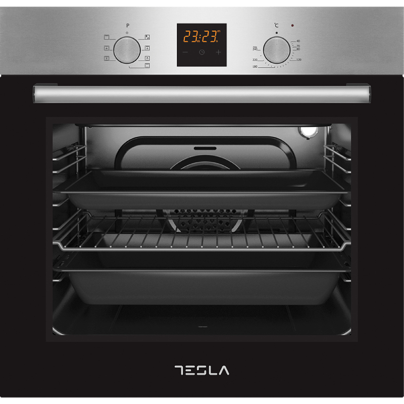 The modern design is complemented by double thermal glass on the door, which not only retains heat inside, but also keeps the outer surface safe to touch. The door and inner surface are designed to facilitate cleaning - without sharp edges and with the ability to remove the glass panel. The strong and stable door hinges are designed to withstand a load of up to 22.5 kg, making it convenient when working with larger dishes. The oven comes complete with a tray and a reversible grill, so you can start cooking immediately after installation. The Tesla BO800SX is an excellent solution for anyone looking for a reliable, efficient and elegant built-in oven. It is suitable for both everyday use and for more special occasions, always guaranteeing even baking and perfect results.