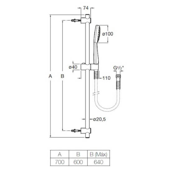 Shower set Stella - tubular suspension with hand shower f100 mm one function