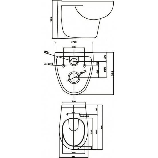 Hung toilet bowl Rimless by INTER CERAMIC. The bowl has a rear drain. With dynamic water supply. Dimensions: 35 x 53.5 x 39.5 cm. Made of white porcelain.