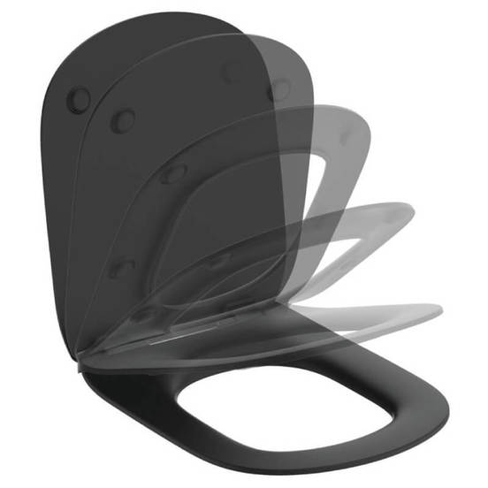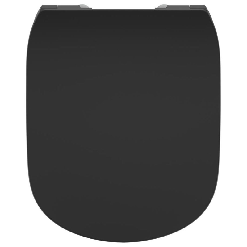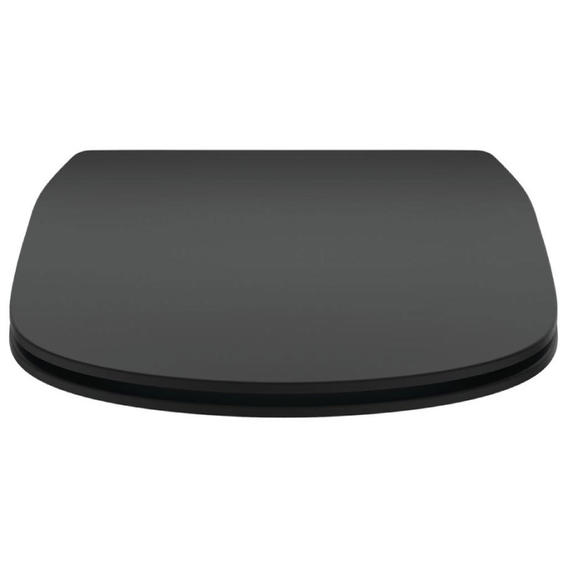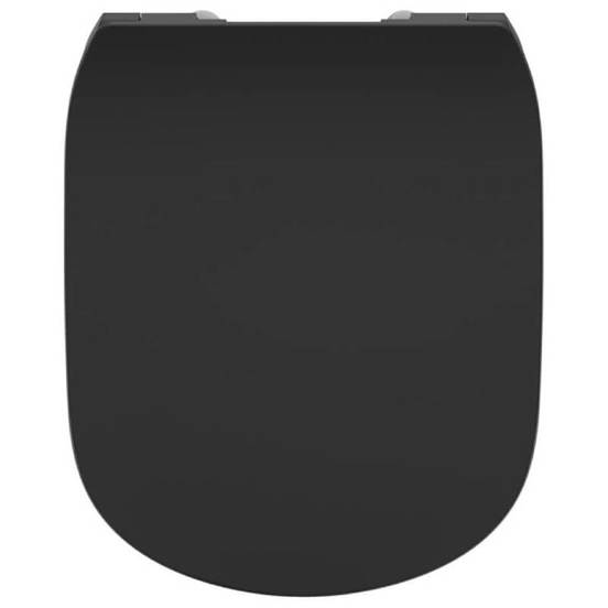 IDEAL STANDARD brand Tesi toilet seat. Made of duroplast in matte black color. With delayed fall function. Length: 44.5 cm. Width: 36.5 cm.