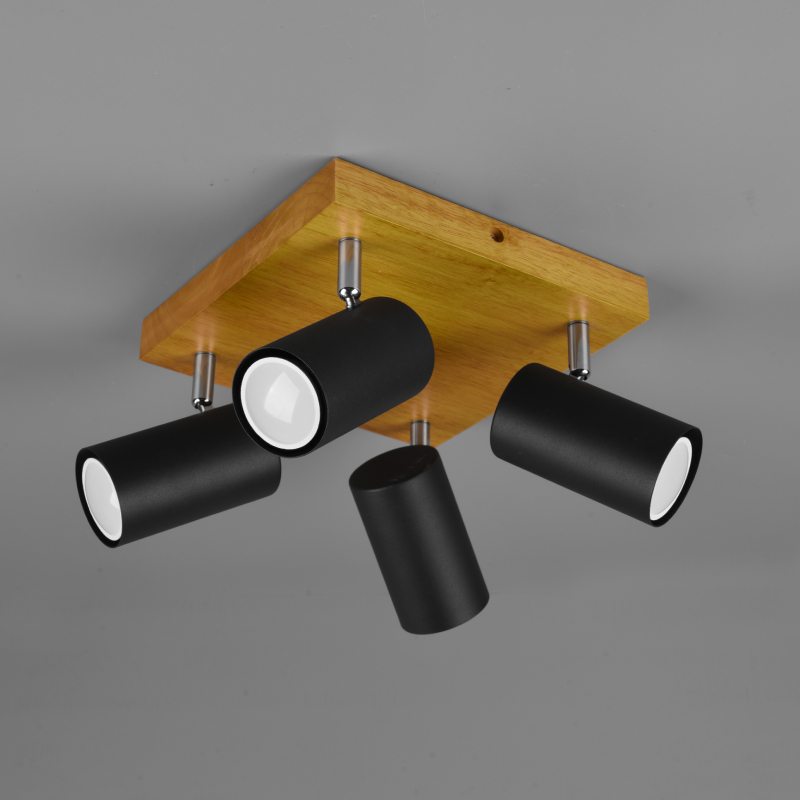 Spot quadruple 4xGU10 Marley black mat/wood - luminaire with directional light 812400432 TRIO