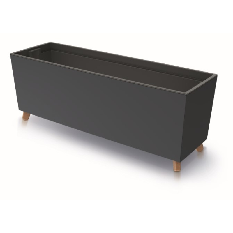 PVC planter from the Urbi concrete effect series of the PROSPERPLAST brand. Made of high-quality plastic in anthracite color.Equipped with an insert that prevents soil spillage, as well as legs that imitate wood.