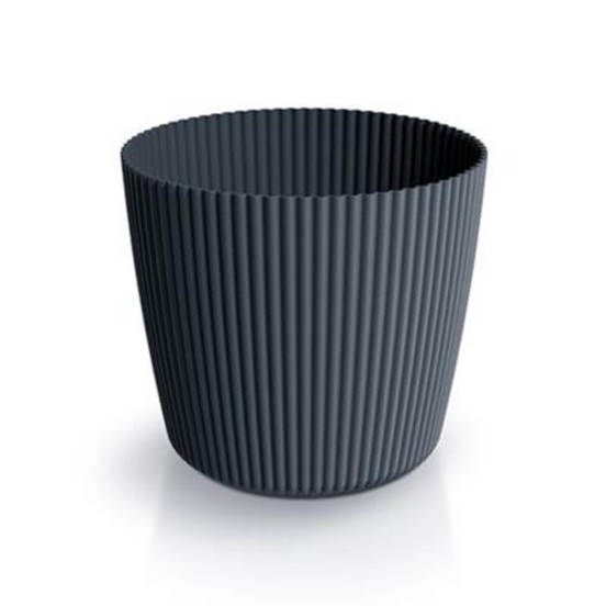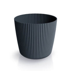 PVC pot from the Milly series of the PROSPERPLAST brand. Made of high-quality plastic in anthracite color. With a structure of vertical stripes that attracts attention and gives the pot a unique character.