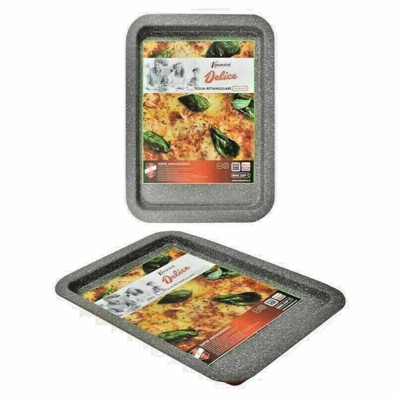 Non-stick cookie sheet. Made of carbon steel, with a marble finish.