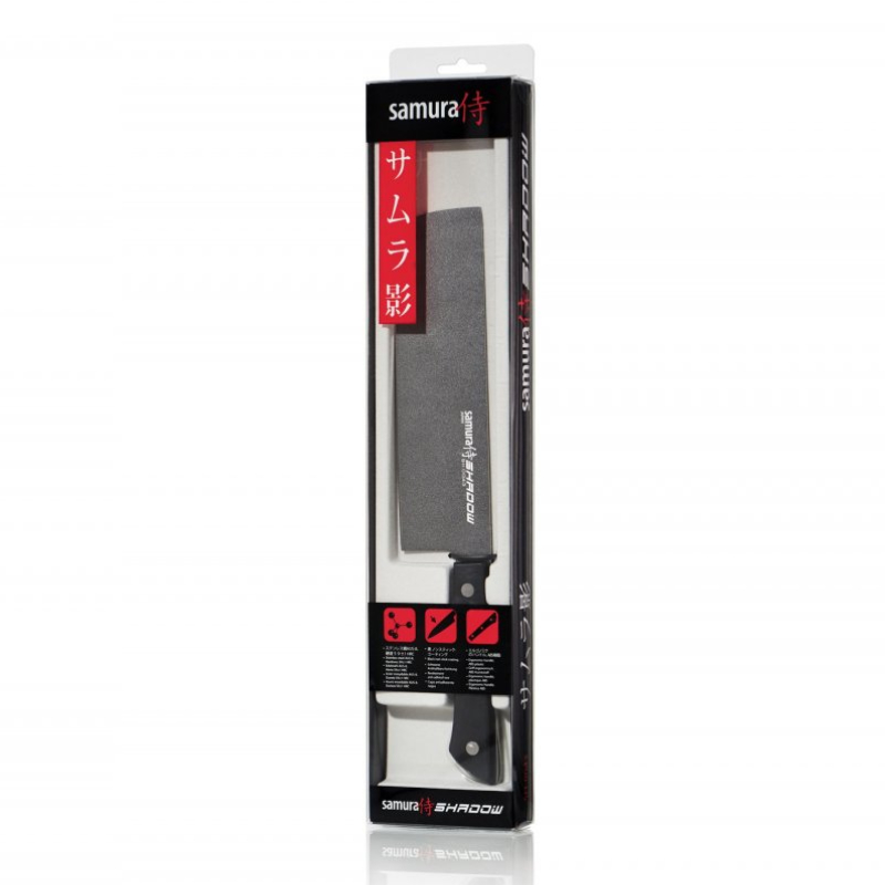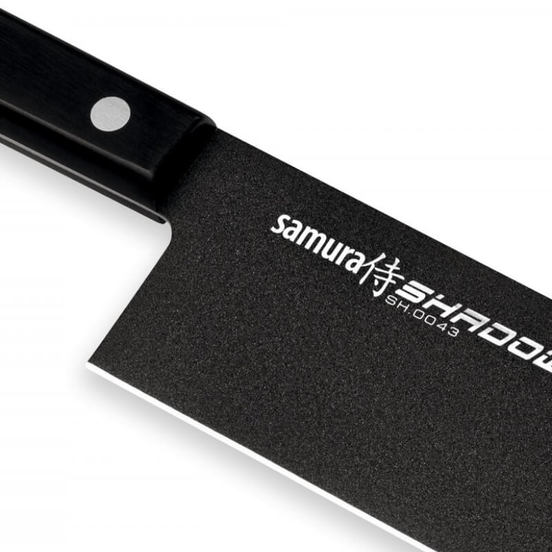 Professional vegetable knife Samura Shadow. The knife has a black non-stick coating. Blade length: 17 cm.