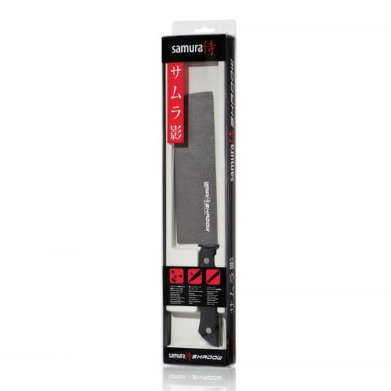 The Shadow series is a stylish collection that owes its elegant and strict design to the combination of a black non-stick coating, a blade made of AUS-8 steel and a handle made of ultra-durable heat-resistant ABS plastic. Despite their imposing appearance, however, Shadow knives are extremely easy to use, and the series includes some of the most frequently used utensils in professional and domestic settings.