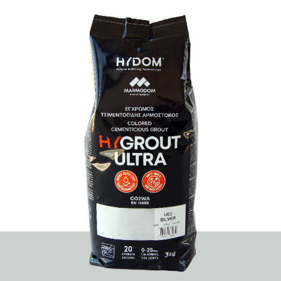 Hy Grout Ultra 3 kg silver grout is a high-quality cement grout of class CG2WA, designed for professional and long-lasting grouting of ceramic tiles, porcelain tiles, large-format tiles, mosaics, natural and artificial stone. The product offers exceptional water resistance and moisture resistance, making it an ideal choice for rooms with high or constant humidity such as bathrooms, kitchens, swimming pools, hammams and saunas.